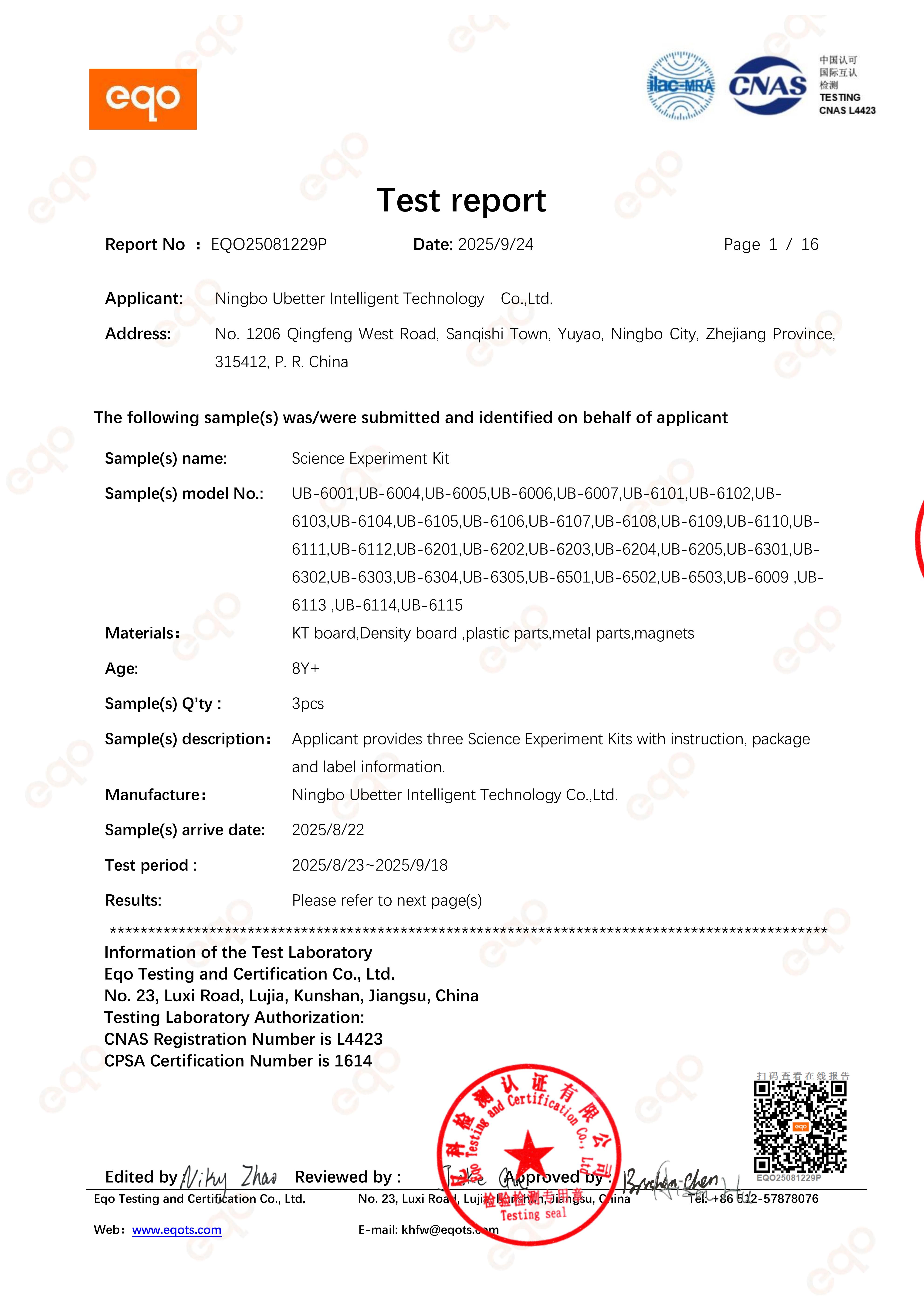 Ningbo Ubetter Intelligent Technology Co.,Ltd. is an innovative company specializing in science and education toys, merging technology with education to create fun, educational products for children.